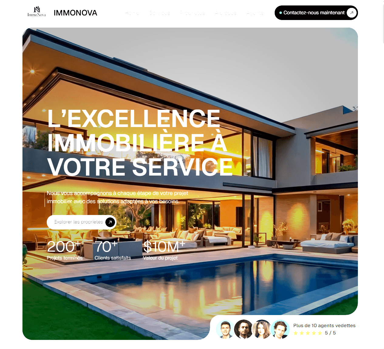 Collaboration fictive — Conception d’un site haut de gamme pour une agence immobilière spécialisée dans les biens d’exception. Objectif : valoriser les propriétés, renforcer la crédibilité et générer davantage de demandes de visite.